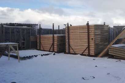 Подрядчик завершил работы по устройству фундамента. В настоящее время ведётся сборка домокомплекта.